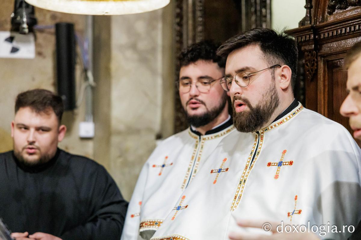 Răspunsurile la strană au fost date de Corul Chivotul „Chivotul” al Catedralei Mitropolitane și, respectiv, de Corul „Basileus” al Seminarului Teologic Ortodox „Sfântul Vasile Cel Mare” din Iași.